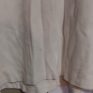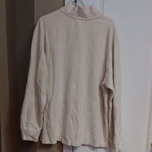 Elegant off-white sweater with quarter-zip. Iconic logo on chest. Perfect for layering. Pit to Pit 26 Inches l, Top to Bottom 29 Inches