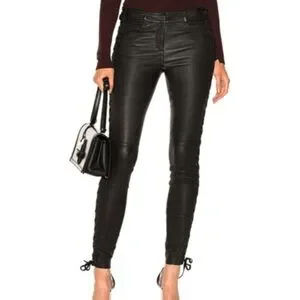A.L.C. ‘Dent’ Black Lace-Up Leather Pants Size 2