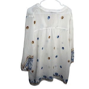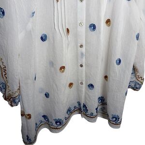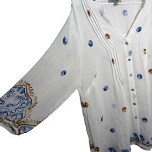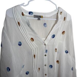 Figueroa & Flower Blouse Women's 1X V-Neck Textured 3/4 Sleeve Sheer Button Top