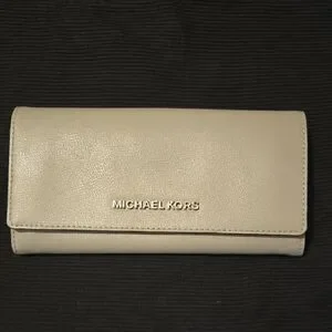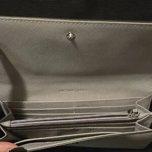 NWOT Chic Michael Kors wallet in beige. Sleek design with logo detail. Ideal for everyday use.