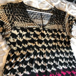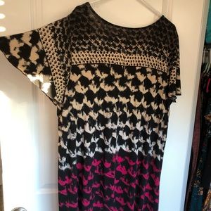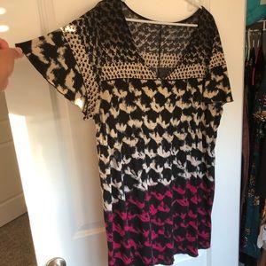 This is a black and white patterned dress with a fuchsia pink gradient hem. Reposing this item I purchased from @ashleyposhluv. Loved it, but ready to rotate for something new.