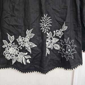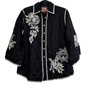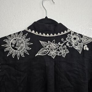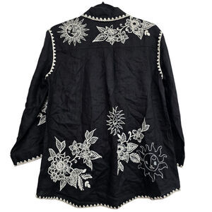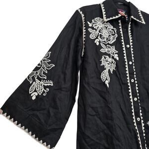 Johnny Was Addison Kimono Sleeve Shirt Black Floral Embroidered Linen Tunic XS