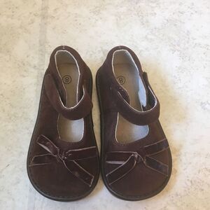 EXCELLENT CONDITION ALLIGATOR SQUEAKER SHOES IN BROWN SUEDE
