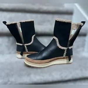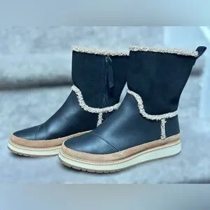 TOMS Makenna Black Leather Mid-Cath Shearling Boots Women’s 6 Style #10014172