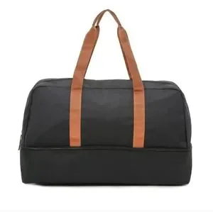 DSW Weekender Duffle Bag Black Tan Separte Shoe Compartment Gym Bag Travel Bag