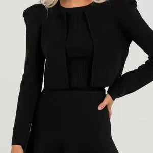 Stylish black cropped jacket with puff sleeves. Perfect for a chic look. NWT