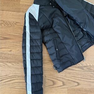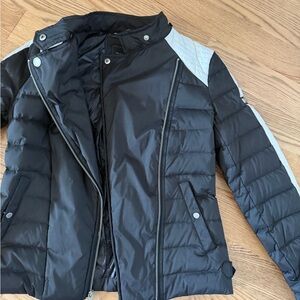 BCBG Maxazria Short Puffer dawn/feather Removable Faux Fur Collar Blk/Wht, Small