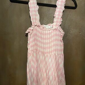 Stylish pink checkered maxi dress. Features a flattering silhouette. Ideal for casual outings.