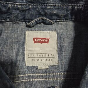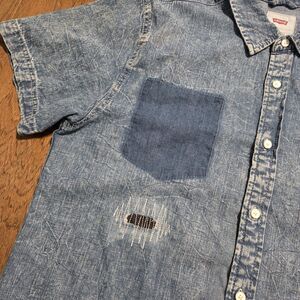 Levis Button Up Shirt Mens Large Short Sleeve Blue Denim Jean Cowboy Red Tab