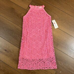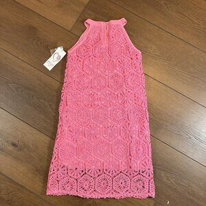 Design History Girls Pink Blast Crochet Halter Dress Size L