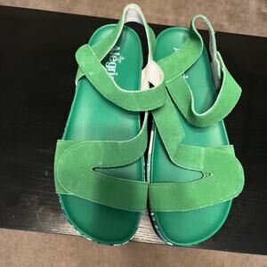 ALEGRIA BY PG LITE GREEN SUEDE ADUSTABLE STRAP FLAT ANA-171 SANDALS 38 / 7.5
