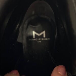 Marc Fisher Black Leather Combat Boots with Patterned Laces, Retails for $239