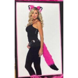 Leg Avenue Rockin Fox Kit OS Furry Headband & Tail Set Pink Black NEW Deadstock