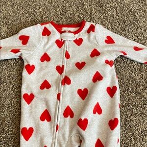 2) Gray with red hearts footie pajamas