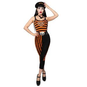 Black & Orange Stripes Lace Camisole Tank Top Pumpkin Jack o Lantern S-3XL NWT
