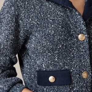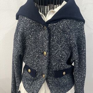 J Crew Marled Sailor Collar Blue Cardigan Medium