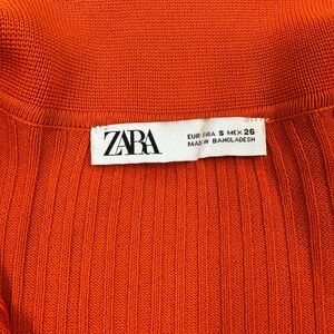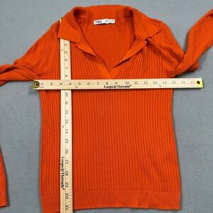 Zara Womens Knit Top S Orange Ribbed Long Sleeve Collared Pullover Sweater Cute