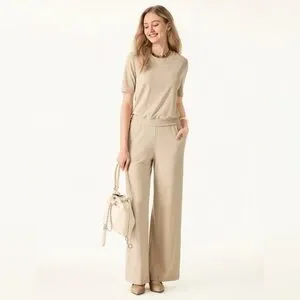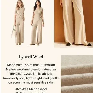 OGL Lyocell Wool Mid Rise Wide Leg Pull-on Pants Pockets SET With TOP Large New