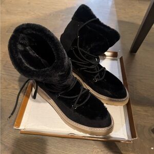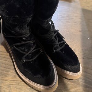 Stay warm and stylish with these black fur boots. Perfect for winter outings. Upper Material. JLo. Worn once