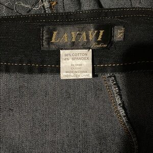 @zinkowska hi, I've updated the images. It's an extra large. 34 inch waist 30 inches long and the fabric is cotton with a little bit of spandex. It's a stretch denim.