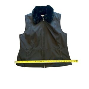 Keywords: Ann Taylor vest, black vest, sleeveless jacket, faux fur collar, womens vest, layering vest, elegant vest, classic vest, fall vest, winter vest, casual vest, dressy vest, outerwear, black sleeveless top, fur collar vest