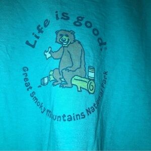 Life is Good Relaxed Fit Blue “Great Smokey National Park” Short Sleeve T-Shirt. There is some slight fading of the print on the front, as shown in photos above. Feel free to make a reasonable offer through the offer button!