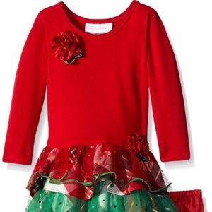 Bonnie Baby Red Tutu Christmas Holiday Dress Set size 24 Mo Long Sleeve