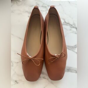 EXC LN EVERLANE The Day Ballet Flat Cognac Brown Toasted Almond 8.5 Square Toe