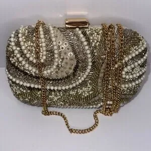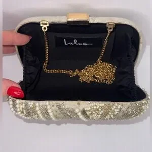 Lulu’s Elegant Beaded Clutch w/ Gold Chain (worn once)