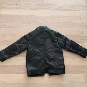 Sleek black jacket with zipper details. Comfortable and stylish for kids.