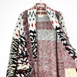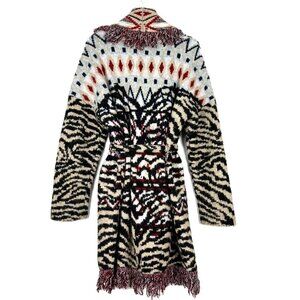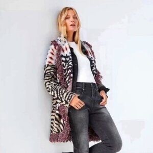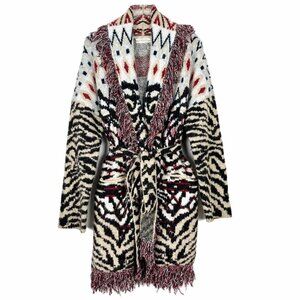 Anthropologie Sweater Women's 1X Paloma Fringed Animal Print Belted Cardigan