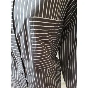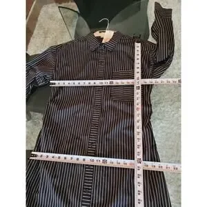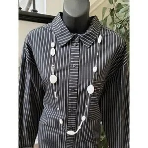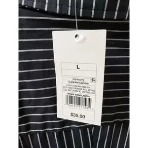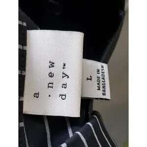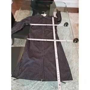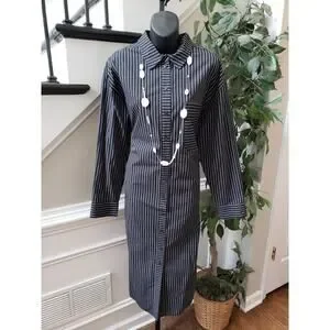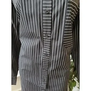 A New Day Dress Women L Black White Striped Shirt Long Sleeve Cotton Midi