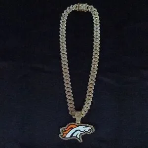 NFL Denver Broncos 20 Inch Necklace Pendant Cuban Chain Link Football Hip Hop Jewelry.