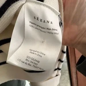 Sezane Cream and Black Striped Betty Cardigan