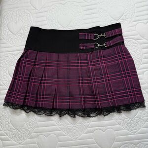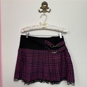 Vintage Morbid Threads Black Pink Purple Plaid Pleated Lace Mini Skirt Medium