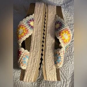 🌸 Dirty Laundry Crochet Granny Square Slides – Boho Festival Dream 🌈