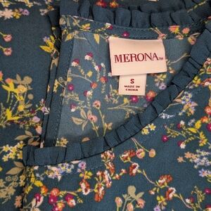 💥SALE💥 Merona Easter Dress In Floral Teal With Ruffle Trim Size Small