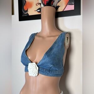 New Lovers and Friends Hana Top in Medium Blue Wash crop denim bra tank