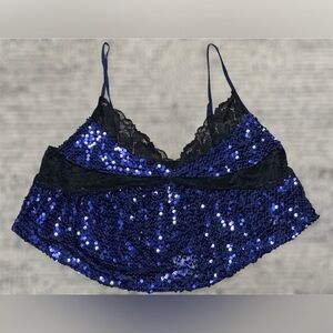 NEW Free People Intimately Right Rhythm Sequin Crop Cami Midnight Blue Women’s M