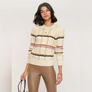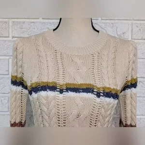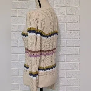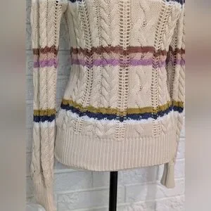 Heartloom Rossini Cable Stitch Pullover Sweater XS Fall Autumn Stripe Relaxed