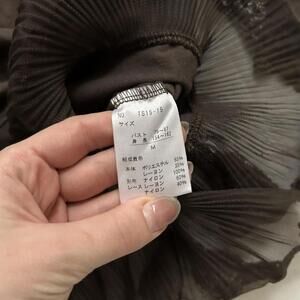 Axes Femme Brown square neck lace trim 3/4 length sleeve top with ruffle hem. Cute lace trims and beading at the neckline. One of the neckline beads is flipped (pictured). Size medium, from Japan