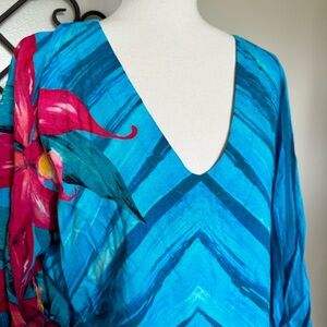 PASSPORTS Size Large beautiful Tropical Poncho Style Blouse Top