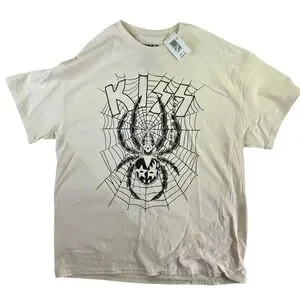 KISS Spider Web Graphic Tee XL Band Tour T-Shirt Beige Rock Vintage Style