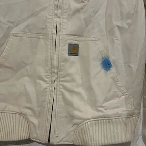 NEW FLAWED Carhartt Cream Relaxed Fit Rugged Flex Jacket Size Large