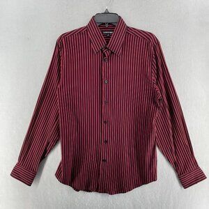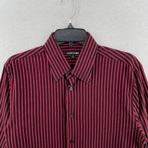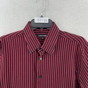 EXPRESS1MX Button-Up Shirt Mens 15.5 Red Vertical Stripe Collared Long Sleeve