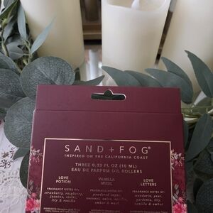 Explore the Sand & Fog Discovery Set, inspired by the California coast. This set includes three captivating scents in purple, white, and pink bottles, perfect for any occasion.
