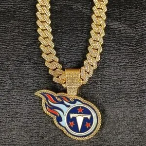 NFL Tennessee Titans 20 Inch Necklace Pendant Cuban Chain Link Football Hip Hop Jewelry.