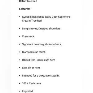 NWOT. Gorgeous, soft sweater with an oversized fit. I just have another red sweater I wear more often, so this deserves a better home. No damage or defects.