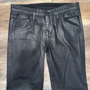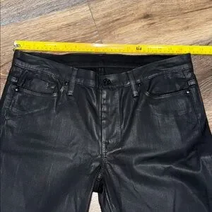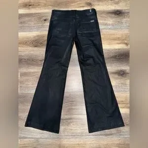 For All Mankind Womens High Rise Coated Slim Wide Leg Jeans Size 32 in Black🖤