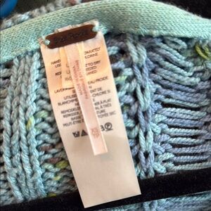 This Free People sweater in a striking blue hue features a unique blend of textures, combining an intricate knit pattern on the bodice with smooth, full-length sleeves. Off the shoulder, cropped length add a modern touch, making it a versatile piece for any wardrobe.